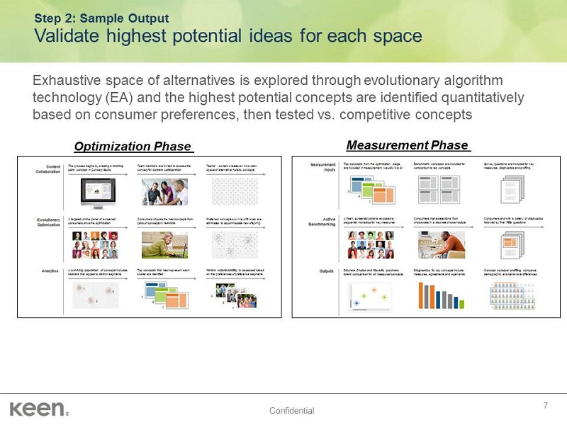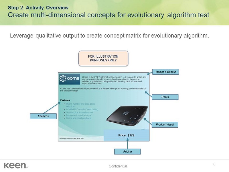 Leverage the output from Qualitative Research to create a concept matrix for the Evolutionary Algorithm analysis (Keen Strategy).
